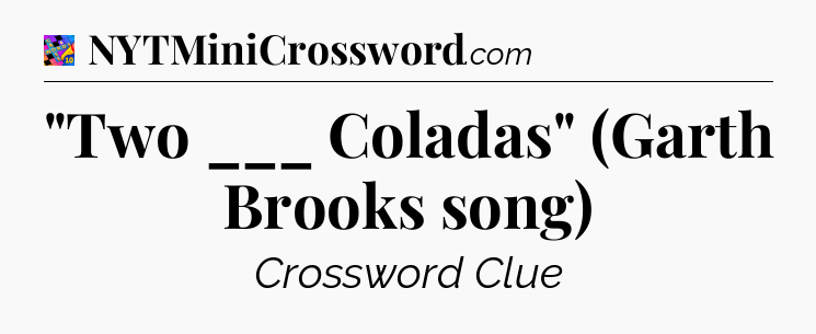 The clue “”Two ___ Coladas” (Garth Brooks song)” most recently appeared in a Crosswords With Friends on December 5, 2023.