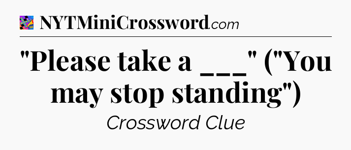 What is the answer to the clue “”Please take a ___” (“You may stop standing”)”?