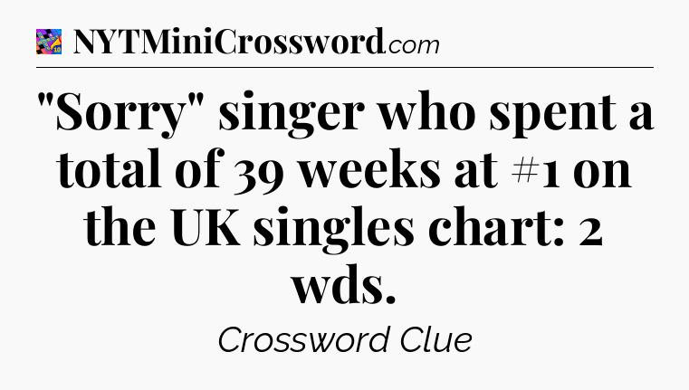 The clue “”Sorry” singer who spent a total of 39 weeks at #1 on the UK singles chart: 2 wds” most recently appeared in a Crosswords With Friends on February 1, 2026.