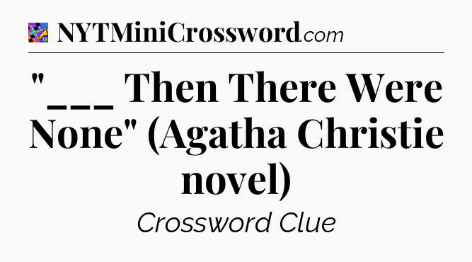 There is 1 possible answer for the crossword clue “”___ Then There Were None” (Agatha Christie novel)”.