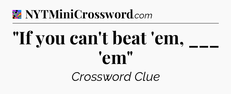 This page will help you find the correct answer to the ‘”If you can’t beat ’em, ___ ’em”‘ clue from Crosswords With Friends. If you’re stuck, simply scroll down to see the solution. We also provide extra answers, helpful hints, and tips to make solving Crosswords With Friends easier and more enjoyable. Use this resource anytime you need quick assistance with tough clues!