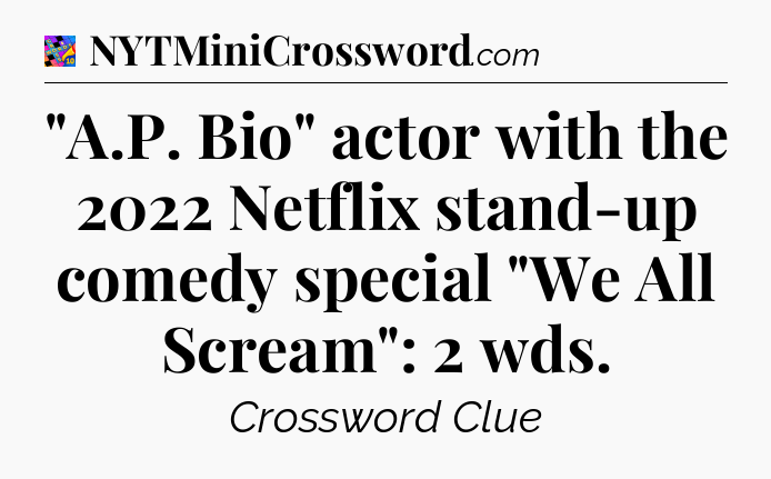 The clue “”A.P. Bio” actor with the 2022 Netflix stand-up comedy special “We All Scream”: 2 wds” most recently appeared in a Crosswords With Friends on February 13, 2024.