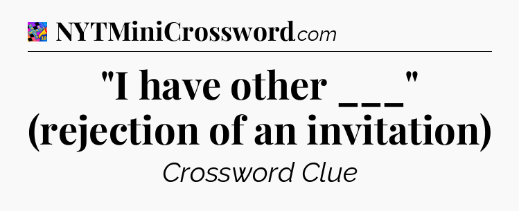 What is the answer to the clue “”I have other ___” (rejection of an invitation)”?
