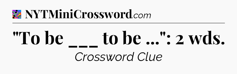 The Answer for “To be ___ to be …”: 2 wds Crossword is: