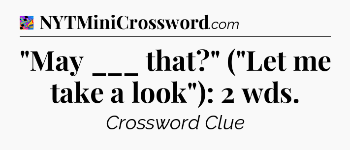 The clue “”May ___ that?” (“Let me take a look”): 2 wds” most recently appeared in a Crosswords With Friends on February 19, 2024.