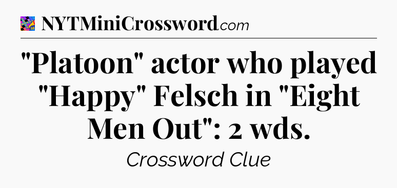 The clue “”Platoon” actor who played “Happy” Felsch in “Eight Men Out”: 2 wds” most recently appeared in a Crosswords With Friends on February 19, 2025.