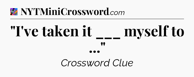 The Answer for “I’ve taken it ___ myself to …” Crossword is: