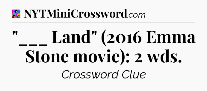 The clue “”___ Land” (2016 Emma Stone movie): 2 wds” most recently appeared in a Crosswords With Friends on February 2, 2025.