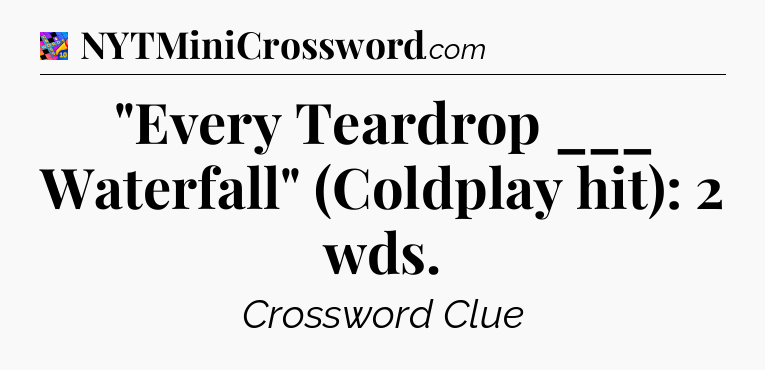 The clue “”Every Teardrop ___ Waterfall” (Coldplay hit): 2 wds” most recently appeared in a Crosswords With Friends on February 23, 2024.