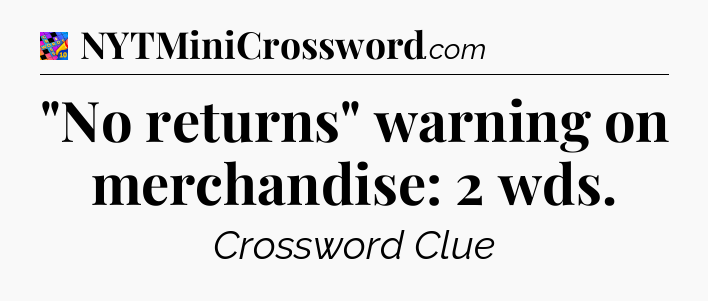 The clue “”No returns” warning on merchandise: 2 wds” most recently appeared in a Crosswords With Friends on February 23, 2024.