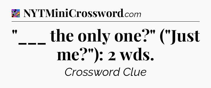 This page will help you find the correct answer to the ‘”___ the only one?” (“Just me?”): 2 wds’ clue from Crosswords With Friends. If you’re stuck, simply scroll down to see the solution. We also provide extra answers, helpful hints, and tips to make solving Crosswords With Friends easier and more enjoyable. Use this resource anytime you need quick assistance with tough clues!