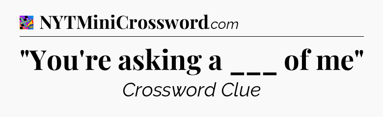 There is 1 possible answer for the crossword clue “”You’re asking a ___ of me””.