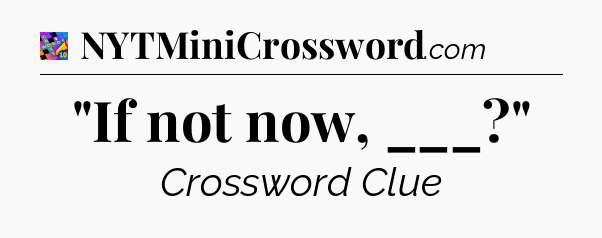 The correct answer to the crossword clue “”If not now, ___?”” is WHEN.