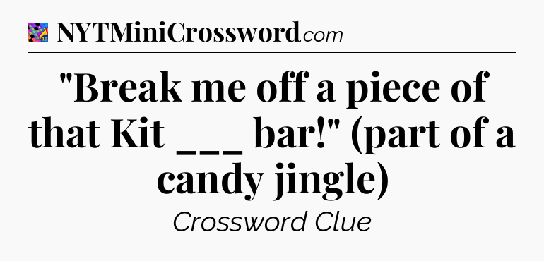 The clue “”Break me off a piece of that Kit ___ bar!” (part of a candy jingle)” most recently appeared in a Crosswords With Friends on March 16, 2024.