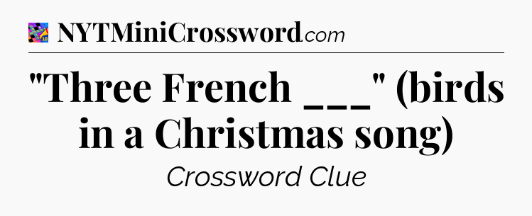 The clue “”Three French ___” (birds in a Christmas song)” most recently appeared in a Crosswords With Friends on March 16, 2025.