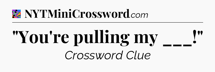 This page will help you find the correct answer to the ‘”You’re pulling my ___!”‘ clue from Crosswords With Friends. If you’re stuck, simply scroll down to see the solution. We also provide extra answers, helpful hints, and tips to make solving Crosswords With Friends easier and more enjoyable. Use this resource anytime you need quick assistance with tough clues!