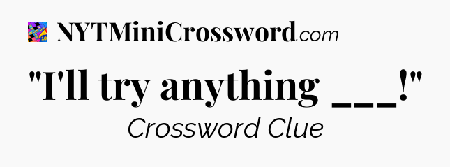 The clue “”I’ll try anything ___!”” most recently appeared in a Crosswords With Friends on March 23, 2024.