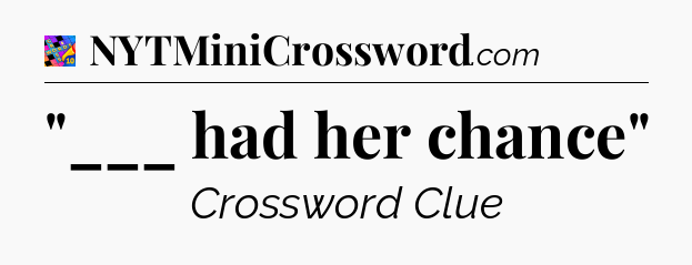 This page will help you find the correct answer to the ‘”___ had her chance”‘ clue from Crosswords With Friends. If you’re stuck, simply scroll down to see the solution. We also provide extra answers, helpful hints, and tips to make solving Crosswords With Friends easier and more enjoyable. Use this resource anytime you need quick assistance with tough clues!