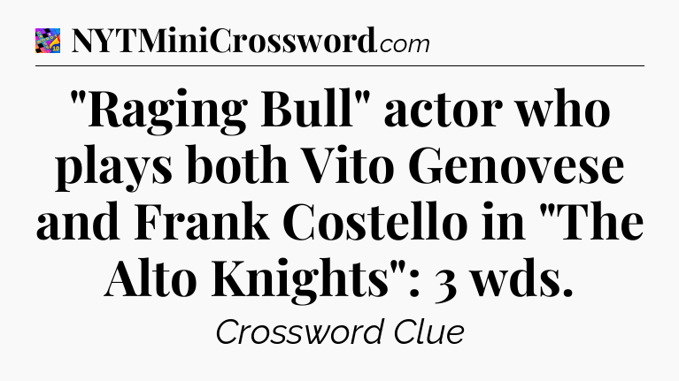 The clue “”Raging Bull” actor who plays both Vito Genovese and Frank Costello in “The Alto Knights”: 3 wds” most recently appeared in a Crosswords With Friends on March 24, 2025.