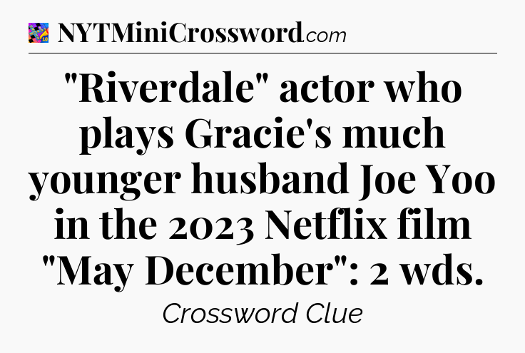 The clue “”Riverdale” actor who plays Gracie’s much younger husband Joe Yoo in the 2023 Netflix film “May December”: 2 wds” most recently appeared in a Crosswords With Friends on March 25, 2024.
