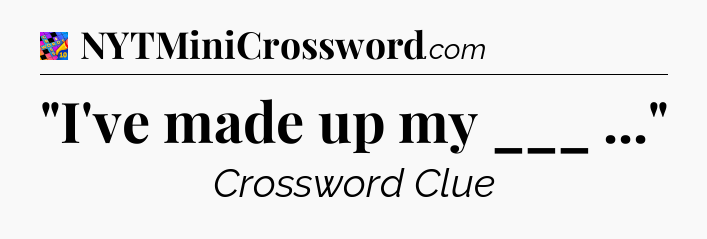 This page will help you find the correct answer to the ‘”I’ve made up my ___ …”‘ clue from Crosswords With Friends. If you’re stuck, simply scroll down to see the solution. We also provide extra answers, helpful hints, and tips to make solving Crosswords With Friends easier and more enjoyable. Use this resource anytime you need quick assistance with tough clues!