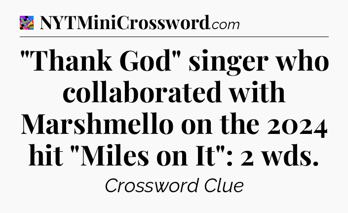 The clue “”Thank God” singer who collaborated with Marshmello on the 2024 hit “Miles on It”: 2 wds” most recently appeared in a Crosswords With Friends on March 26, 2026.
