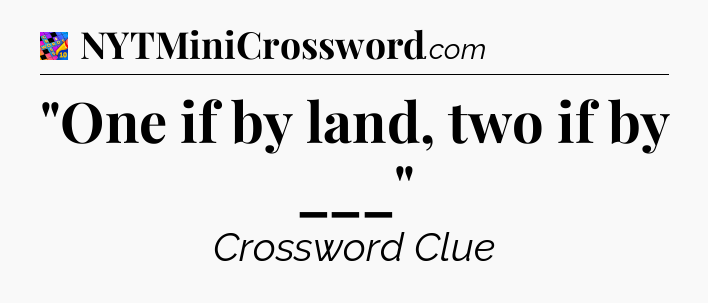 This page will help you find the correct answer to the ‘”One if by land, two if by ___”‘ clue from Crosswords With Friends. If you’re stuck, simply scroll down to see the solution. We also provide extra answers, helpful hints, and tips to make solving Crosswords With Friends easier and more enjoyable. Use this resource anytime you need quick assistance with tough clues!