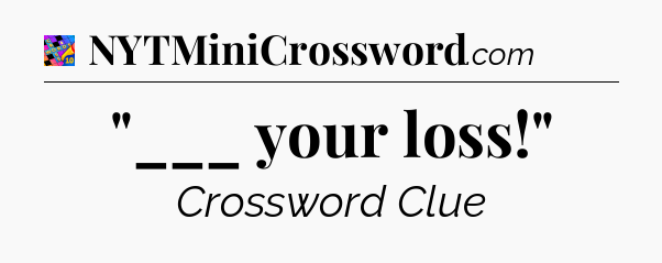 This page will help you find the correct answer to the ‘”___ your loss!”‘ clue from Crosswords With Friends. If you’re stuck, simply scroll down to see the solution. We also provide extra answers, helpful hints, and tips to make solving Crosswords With Friends easier and more enjoyable. Use this resource anytime you need quick assistance with tough clues!