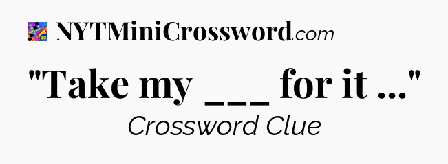 This page will help you find the correct answer to the ‘”Take my ___ for it …”‘ clue from Crosswords With Friends. If you’re stuck, simply scroll down to see the solution. We also provide extra answers, helpful hints, and tips to make solving Crosswords With Friends easier and more enjoyable. Use this resource anytime you need quick assistance with tough clues!