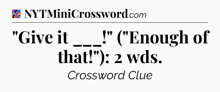 The clue “”Give it ___!” (“Enough of that!”): 2 wds” most recently appeared in a Crosswords With Friends on March 6, 2024.