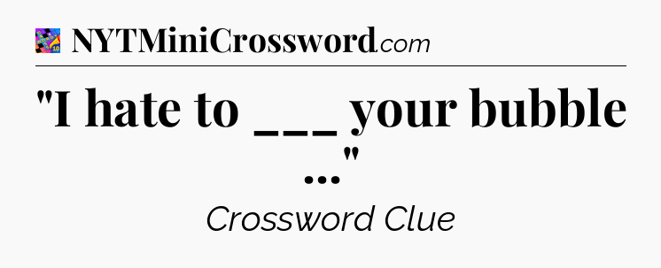 This page will help you find the correct answer to the ‘”I hate to ___ your bubble …”‘ clue from Crosswords With Friends. If you’re stuck, simply scroll down to see the solution. We also provide extra answers, helpful hints, and tips to make solving Crosswords With Friends easier and more enjoyable. Use this resource anytime you need quick assistance with tough clues!