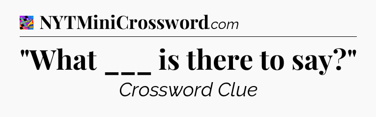 The clue “”What ___ is there to say?”” most recently appeared in a Crosswords With Friends on April 13, 2024.