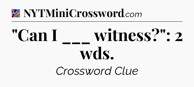 This page will help you find the correct answer to the ‘”Can I ___ witness?”: 2 wds’ clue from Crosswords With Friends. If you’re stuck, simply scroll down to see the solution. We also provide extra answers, helpful hints, and tips to make solving Crosswords With Friends easier and more enjoyable. Use this resource anytime you need quick assistance with tough clues!