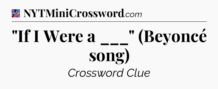 There is 1 possible answer for the crossword clue “”If I Were a ___” (Beyoncé song)”.