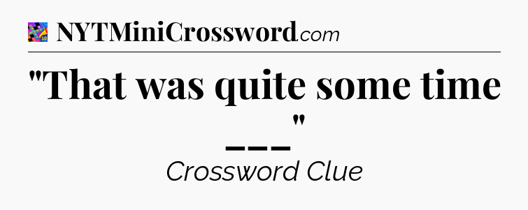 There is 1 possible answer for the crossword clue “”That was quite some time ___””.