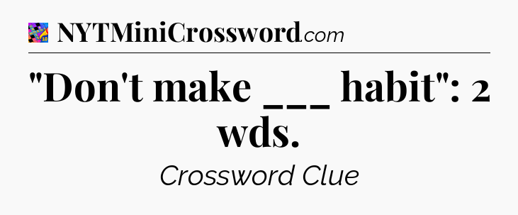 There is 1 possible answer for the crossword clue “”Don’t make ___ habit”: 2 wds”.