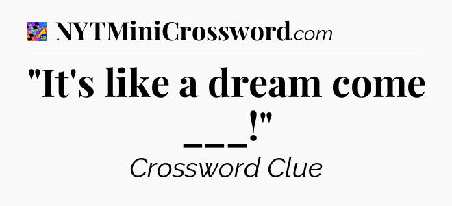 This page will help you find the correct answer to the ‘”It’s like a dream come ___!”‘ clue from Crosswords With Friends. If you’re stuck, simply scroll down to see the solution. We also provide extra answers, helpful hints, and tips to make solving Crosswords With Friends easier and more enjoyable. Use this resource anytime you need quick assistance with tough clues!