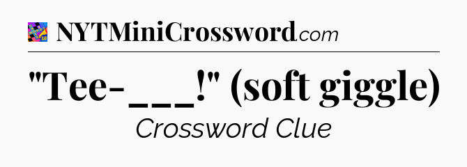 This page will help you find the correct answer to the ‘”Tee-___!” (soft giggle)’ clue from Crosswords With Friends. If you’re stuck, simply scroll down to see the solution. We also provide extra answers, helpful hints, and tips to make solving Crosswords With Friends easier and more enjoyable. Use this resource anytime you need quick assistance with tough clues!