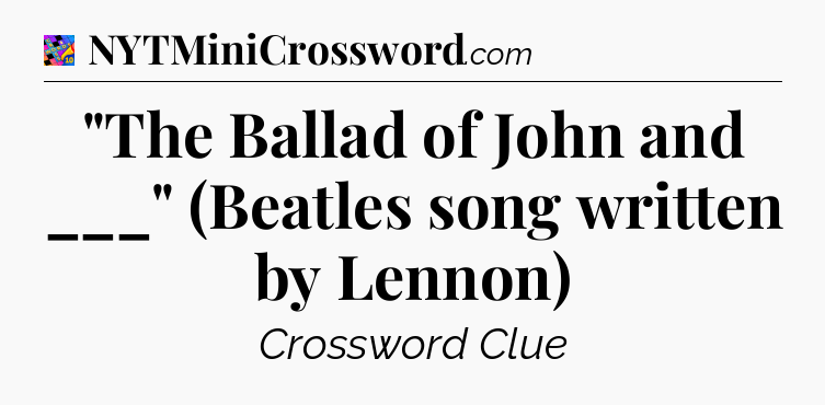 The clue “”The Ballad of John and ___” (Beatles song written by Lennon)” most recently appeared in a Crosswords With Friends on April 19, 2026.