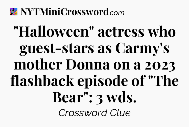 The clue “”Halloween” actress who guest-stars as Carmy’s mother Donna on a 2023 flashback episode of “The Bear”: 3 wds” most recently appeared in a Crosswords With Friends on April 23, 2024.