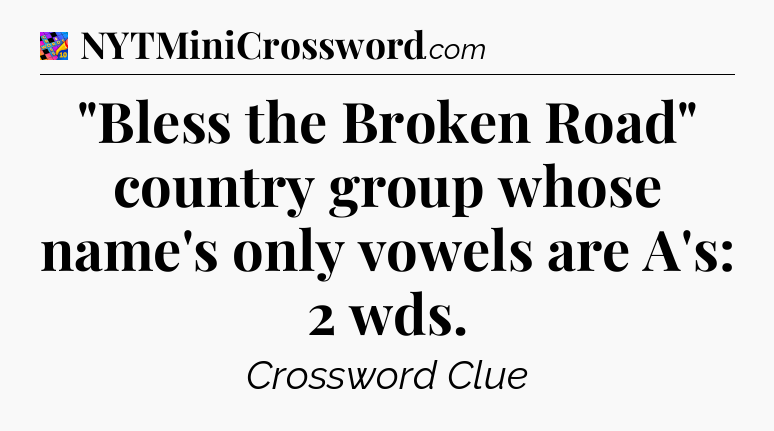 The clue “”Bless the Broken Road” country group whose name’s only vowels are A’s: 2 wds” most recently appeared in a Crosswords With Friends on April 25, 2024.