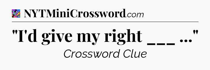 This page will help you find the correct answer to the ‘”I’d give my right ___ …”‘ clue from Crosswords With Friends. If you’re stuck, simply scroll down to see the solution. We also provide extra answers, helpful hints, and tips to make solving Crosswords With Friends easier and more enjoyable. Use this resource anytime you need quick assistance with tough clues!