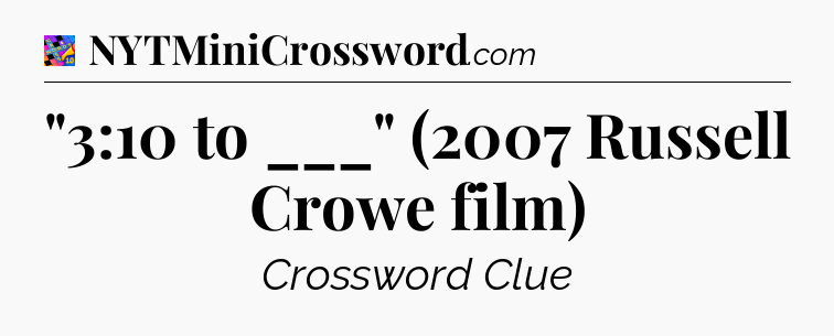There is 1 possible answer for the crossword clue “”3:10 to ___” (2007 Russell Crowe film)”.
