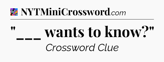 The clue “”___ wants to know?”” most recently appeared in a Crosswords With Friends on April 8, 2025.