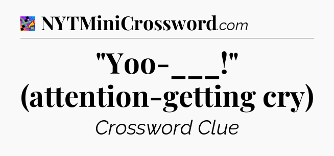 This page will help you find the correct answer to the ‘”Yoo-___!” (attention-getting cry)’ clue from Crosswords With Friends. If you’re stuck, simply scroll down to see the solution. We also provide extra answers, helpful hints, and tips to make solving Crosswords With Friends easier and more enjoyable. Use this resource anytime you need quick assistance with tough clues!