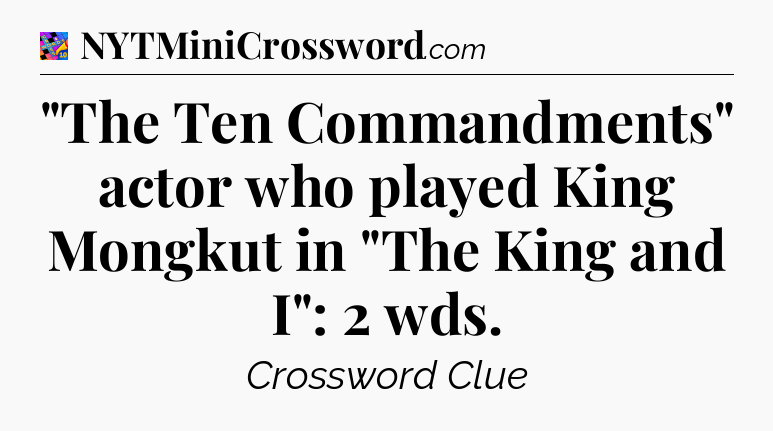 The Answer for “The Ten Commandments” actor who played King Mongkut in “The King and I”: 2 wds Crossword is: