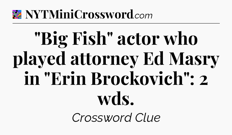 The clue “”Big Fish” actor who played attorney Ed Masry in “Erin Brockovich”: 2 wds” most recently appeared in a Crosswords With Friends on May 14, 2025.