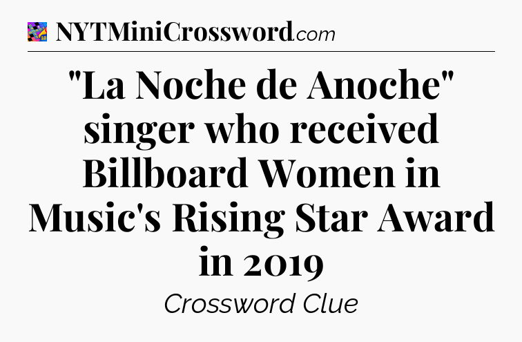 The clue “”La Noche de Anoche” singer who received Billboard Women in Music’s Rising Star Award in 2019″ most recently appeared in a Crosswords With Friends on May 16, 2024.