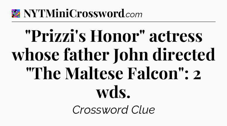 The clue “”Prizzi’s Honor” actress whose father John directed “The Maltese Falcon”: 2 wds” most recently appeared in a Crosswords With Friends on May 18, 2025.