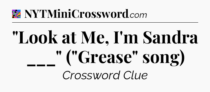 This page will help you find the correct answer to the ‘”Look at Me, I’m Sandra ___” (“Grease” song)’ clue from Crosswords With Friends. If you’re stuck, simply scroll down to see the solution. We also provide extra answers, helpful hints, and tips to make solving Crosswords With Friends easier and more enjoyable. Use this resource anytime you need quick assistance with tough clues!